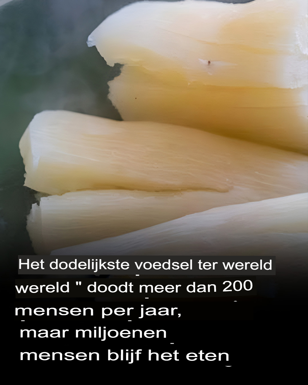 Cassave is zeer populair in Afrika, Azië en Latijns-Amerika en is een ware levensbron. Het groeit waar andere gewassen falen en voedt bijna 800 miljoen mensen. Maar deze knol verbergt een onzichtbare bedreiging: stoffen die cyanide kunnen vrijmaken! Rauw of slecht bereid kan het ernstige en zelfs dodelijke vergiftiging veroorzaken. De sleutel? Laat het altijd lang weken, fermenteren of koken voordat u het consumeert. Voor zo’n alledaags voedingsmiddel is waakzaamheid geboden.
