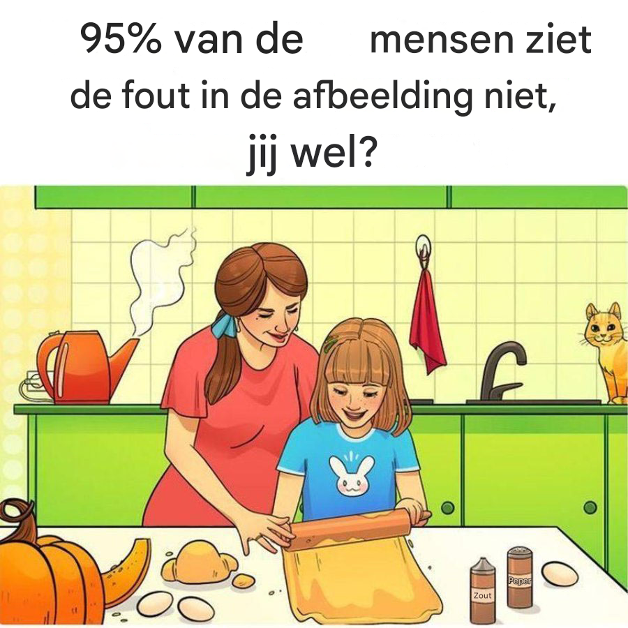 De fout in deze keukenfoto ligt in het mengen van de zout- en pepercapsules. Zulke subtiele details blijven vaak onopgemerkt, zelfs voor de meest oplettende ogen. Ook al lijkt deze uitwisseling triviaal, het illustreert hoe onze waarneming kan worden misleid door wat normaal lijkt. Het laat ook zien dat onze hersenen, die gewend zijn om bekende elementen te verwerken, deze elementen accepteren zonder ze in twijfel te trekken. Juist daarom zijn deze puzzels zo effectief bij het testen van onze observatie- en analysevaardigheden.