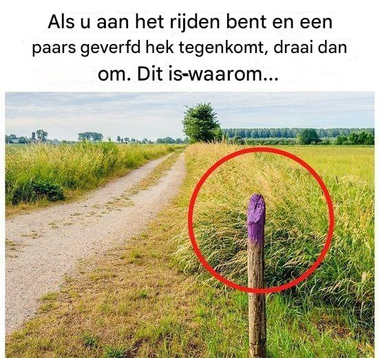 Als je een paarse paal ziet , stop dan en draai je om . Het gaat niet alleen om het naleven van de regels met betrekking tot eigendommen, maar ook om het respecteren van grenzen, veilig blijven en het vermijden van gevaarlijke of illegale situaties.