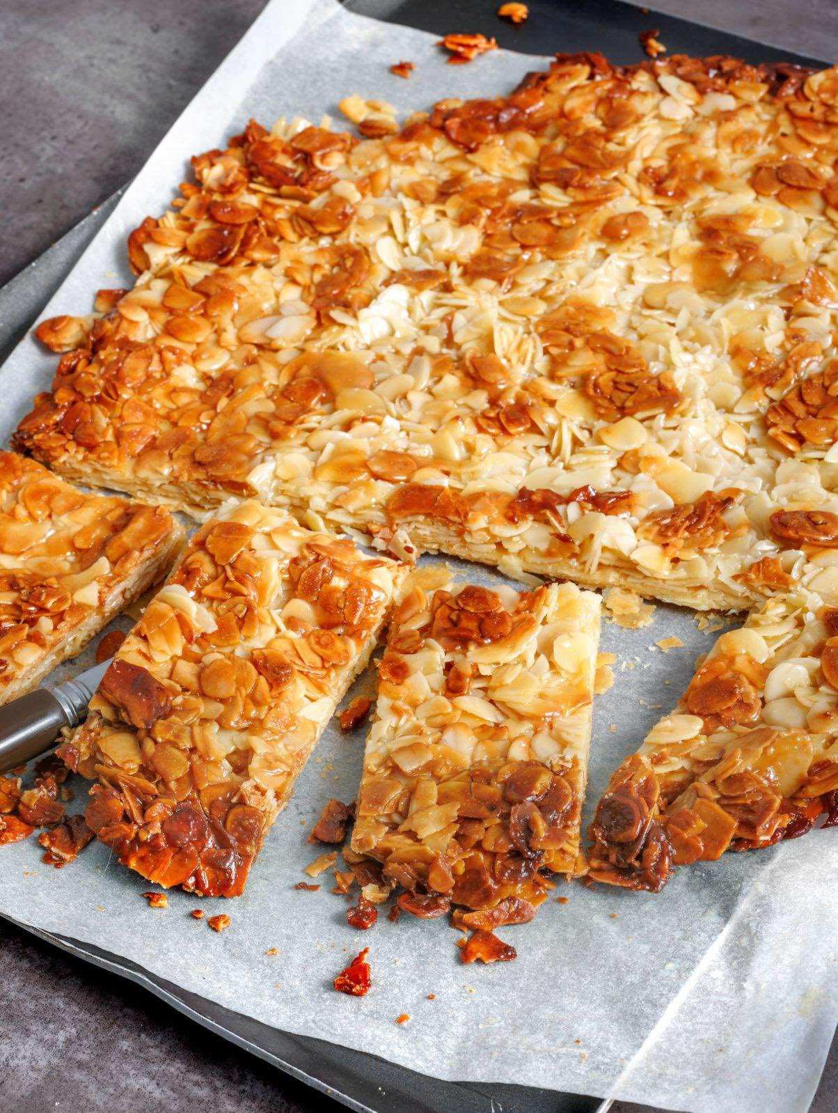 Amandel Florentijnse plakjes zijn een heerlijk gebakje met een knapperige, boterachtige bodem met daarop een rijke, gekarameliseerde amandellaag. Deze klassieke Europese traktatie staat bekend om zijn nootachtige crunch, zoete honingglazuur en goudbruine afwerking. Of ze nu worden geserveerd als dessert, middagsnack of naast een kopje koffie, deze plakjes bieden een perfecte balans tussen textuur en smaak.