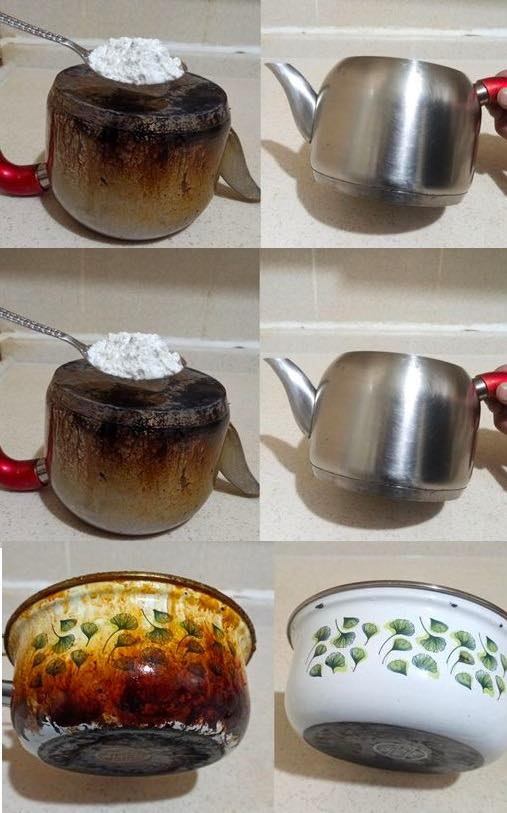 Hoe maak ik aangebrande pannen aan de buitenkant schoon en laat ik ze weer glanzen?