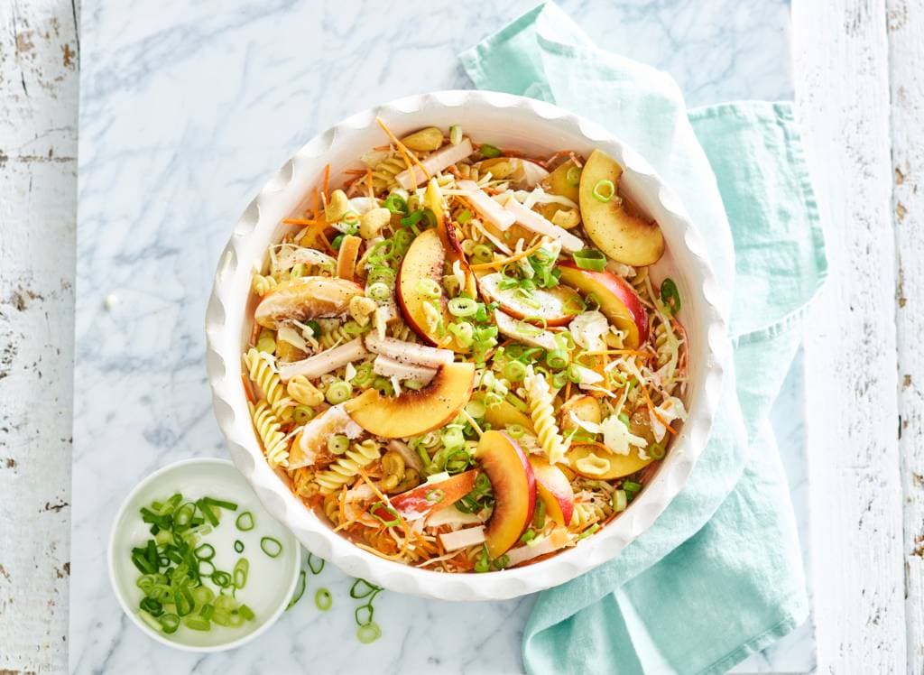 Deze zomerse pastasalade is een heerlijke en verfrissende maaltijd, perfect voor de zonnige dagen! De combinatie van fusilli, bosui, nectarines, cashewnoten, gerookte kip, peen julienne en witte kool, maakt deze salade tot een kleurrijk en smaakvol geheel. En met de dressing van Griekse yoghurt, mayonaise en citroen is het helemaal af! 😋 » Waarom deze salade … Lire plus