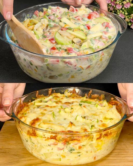 Deze bloemkool- en groentebak met zure room en kaas is een stevig en voedzaam gerecht, perfect voor familiediners of bijeenkomsten. Boordevol een verscheidenheid aan groenten en een romig eimengsel, is deze bak niet alleen heerlijk, maar ook rijk aan vitamines en mineralen. Het is een geweldige manier om te genieten van een verscheidenheid aan groenten in één hartig gerecht.
