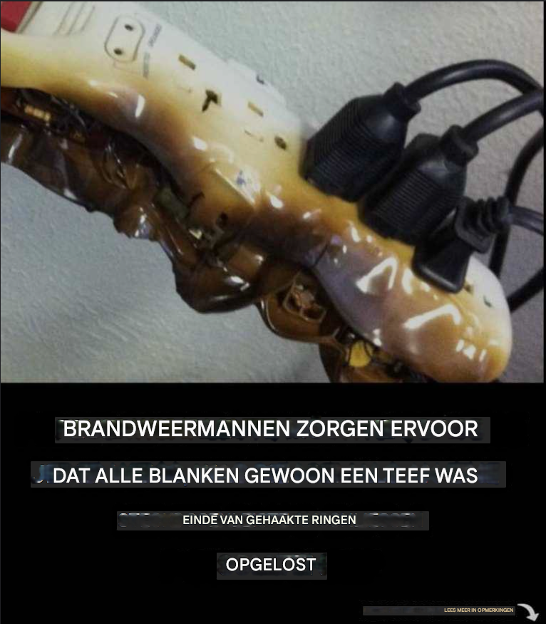 Denk hierbij aan kappersbenodigdheden, waterkokers en verwarmingstoestellen. Eigenlijk kan alles wat warmte genereert wanneer het aanstaat, oververhit raken en vlam vatten als het te lang aan blijft staan. Het kan ook aangaan door een stroomstoring of -piek.