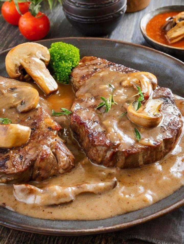 Mijn man vraagt me voortdurend om dit gerecht voor hem te maken, dus ik noem dit gerecht graag ‘Husband’s Happiness’. Ingrediënten: 6 middelgrote runderrandsteaks 1 middelgrote ui, in plakjes gesneden 8 ons nieuwe champignons, fijn gesneden 3/4 bakje kippenbouillon 1/2 potje room 1/4 glas droge sherry 1/4 kopje bloem voor alle doeleinden 4 eetlepels olie … Lire plus