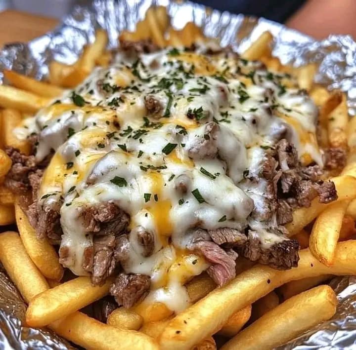Philly Cheesesteak Friet 🥩🍟🧀 Als je op zoek bent naar een heerlijk en eenvoudig recept dat de knapperige friet combineert met de klassieke smaken van Philly Cheesesteak, dan is dit het perfecte recept voor jou! Een gastronomisch gerecht dat knapperige friet, malse biefstuk, gesmolten kaas en gebakken groenten combineert. Ideaal als snelle maaltijd of als … Lire plus