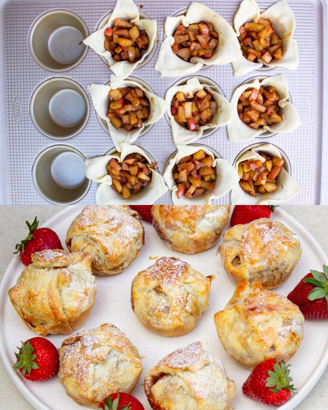 Deze mini-appeltaartjes zijn hapklare lekkernijen die de zoetheid van gekarameliseerde appels combineren met de schilferige zoetheid van bladerdeeg. Deze taarten zijn perfect voor een snel dessert. Ze zijn gemakkelijk te maken en bieden een heerlijke mix van warme, met kaneel gekruide appelvulling met een lichte, boterachtige korst. Een laagje poedersuiker zorgt voor de perfecte finishing … Lire plus