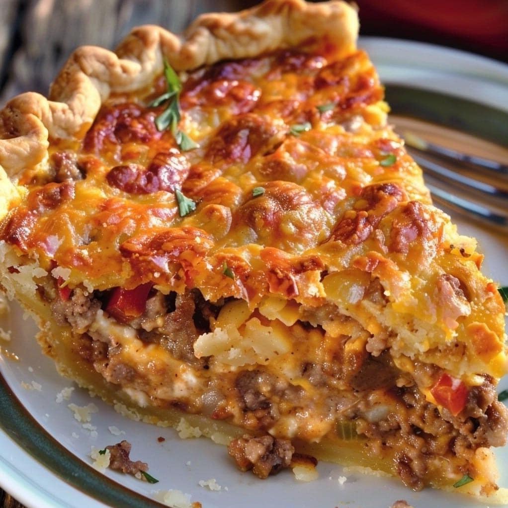 De Cheeseburger Pizza Pie is een heerlijk fusiongerecht dat de beste elementen van twee klassieke favorieten combineert: de cheeseburger en pizza. Deze hartige taart heeft een schilferige korst gevuld met gekruid rundergehakt, kleverige gesmolten kaas en toppings die doen denken aan een sappige cheeseburger, allemaal tot in de perfectie gebakken. Het is een stevig, geruststellend gerecht dat perfect is voor familiediners of informele bijeenkomsten.