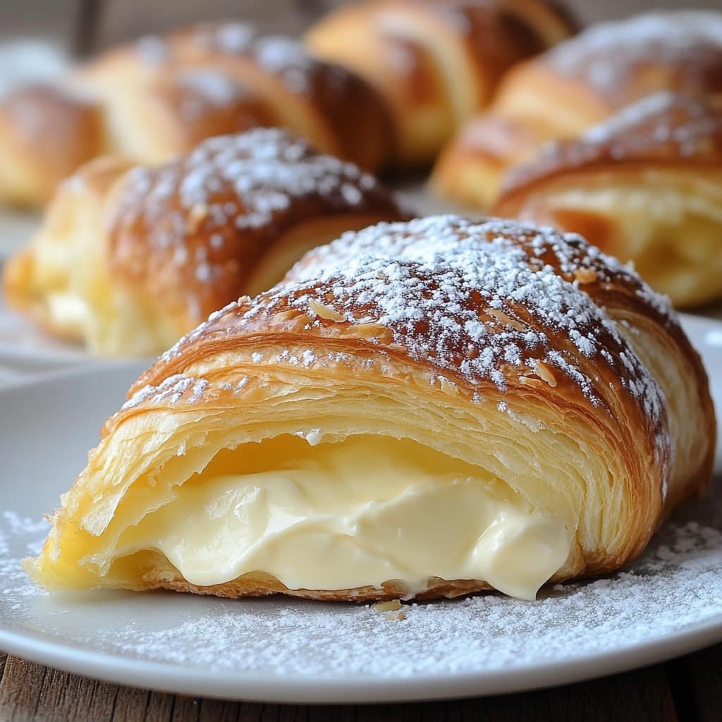 Met vanilleroom gevulde croissants brengen de delicate schilfering van klassieke croissants samen met een rijke, fluweelzachte vanilleroomvulling. Perfect voor ontbijt, brunch of dessert, deze gebakjes bieden een luxe traktatie die zeker indruk zal maken. Met een gouden, boterachtige korst en een romig interieur geeft dit recept je het gevoel dat je een Parijs café bent binnengestapt.