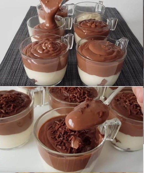 Giet de melk in een pan en voeg de eidooiers, suiker en cornstarch toe. Breng het mengsel aan de kook en laat het indikken. Voeg dan de boter, het zout, de room et de vanillin toe. Verdeel tot slot de room in twee porties en smelt de chocolade in één van de twee porties. Maak nu het desszert klaar en szerver het. Hozzávalók: