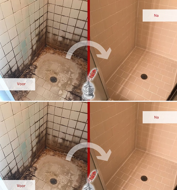 5. Spuit het mengsel op de schimmel en meeldauw en laat het 20-30 minuten zitten. Neem dan een schrobborstel en begin met wat elleboogvet. Spoel het na met water.