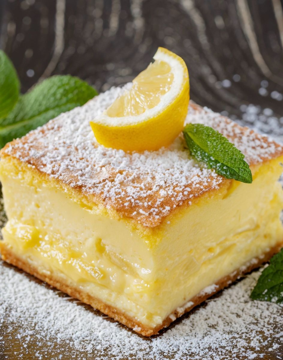 Hallo mijn lieve vrienden! Het is Mckayla en ik ben hier om een heerlijk recept te delen, perfect om donkere dagen op te fleuren of zonnige dagen te vieren. Vandaag gaan we een heerlijke Lemon Custard Cake voor je maken, een tijdloos dessert dat goede herinneringen oproept aan zondagse diners bij oma en picknicks in de buitenlucht. Dit dessert is niet alleen een traktatie voor je smaakpapillen; Het is een eerbetoon aan de tradities die ons dierbaar zijn. Laten we beginnen met koken en een vleugje pittige citroen aan je tafel toevoegen!