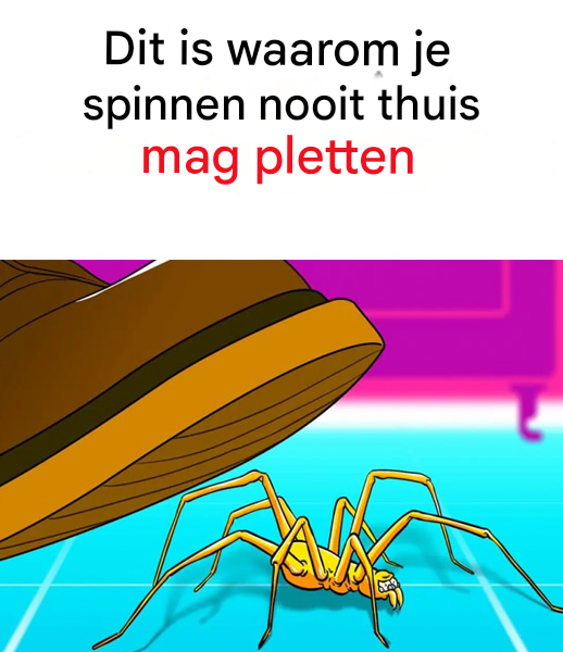 Wist je dat? Een spin kan elke dag het equivalent van haar eigen gewicht aan insecten vangen .Ze zijn ongevaarlijk voor de mens.