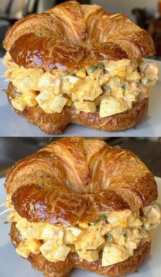 De Egg Salad Croissant Sandwich is een klassiek en eenvoudig recept dat de rijke, romige smaken van eiersalade combineert met boterachtige, schilferige croissants. Deze sandwich is perfect voor een lichte lunch, brunch of zelfs een picknick. Het is een snelle, gemakkelijk te maken maaltijd met veel smaak.