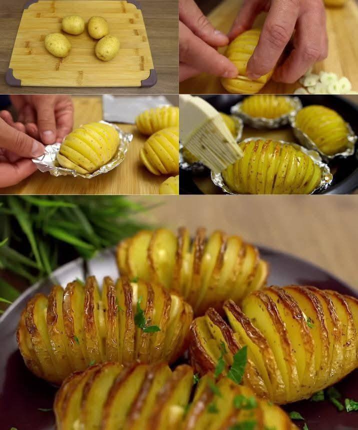 Bestrijk de aardappelen met het gesmolten boter-knoflookmengsel.