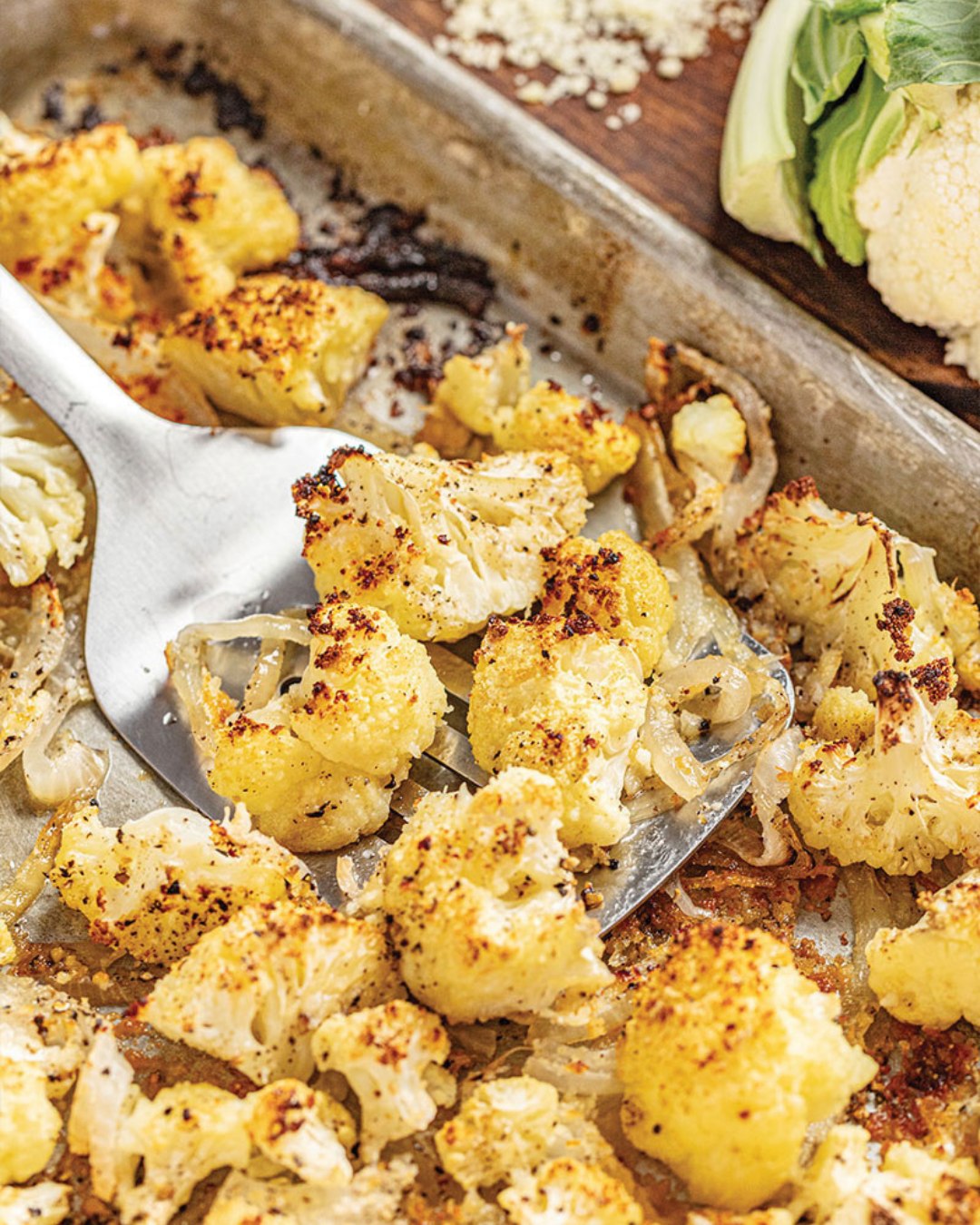 Verdeel de bloemkoolroosjes in één laag over een bakplaat. Voor het beste resultaat gebruikt u bakpapier om plakken te voorkomen.