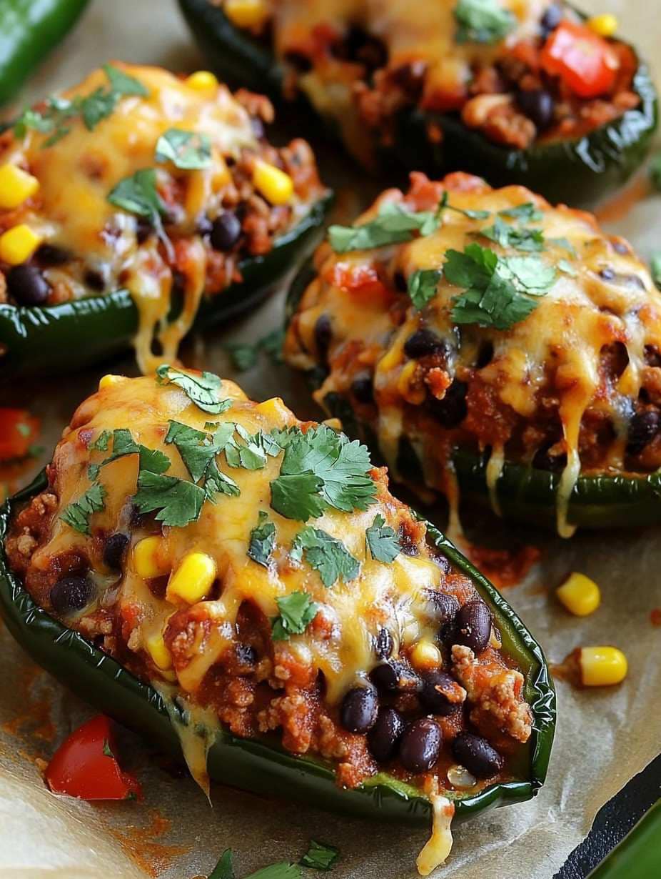 Gevulde Poblano-pepers in Mexicaanse stijl zijn een heerlijk en stevig gerecht dat rokerige, milde poblano-pepers combineert met een smaakvolle vulling van gekruid gehakt, zwarte bonen, maïs, tomaten en gesmolten kaas. Dit gerecht is een perfecte balans tussen gedurfde kruiden en geruststellende texturen, waardoor het een favoriet is voor doordeweekse diners of speciale bijeenkomsten. Of ze nu gebakken of gegrild zijn, deze gevulde poblano’s leveren authentieke Mexicaanse smaken die je doen verlangen naar meer.