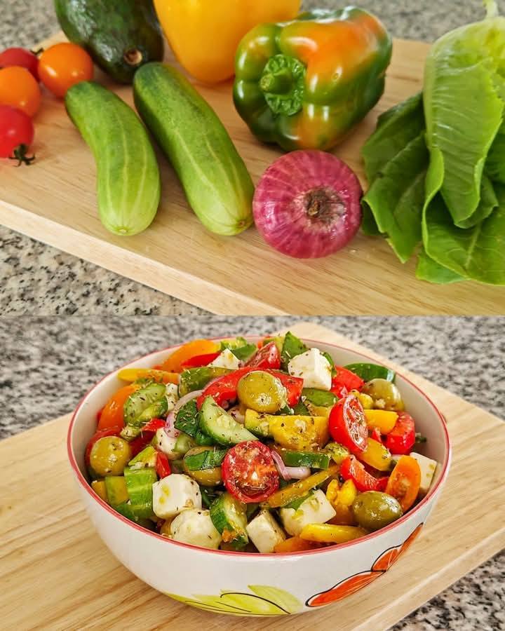 Deze frisse en kleurrijke Griekse salade combineert diverse groenten, fetakaas en olijven, allemaal met een pittige citroen-knoflookvinaigrette. Ideaal voor een gezonde en heerlijke maaltijd of bijgerecht.