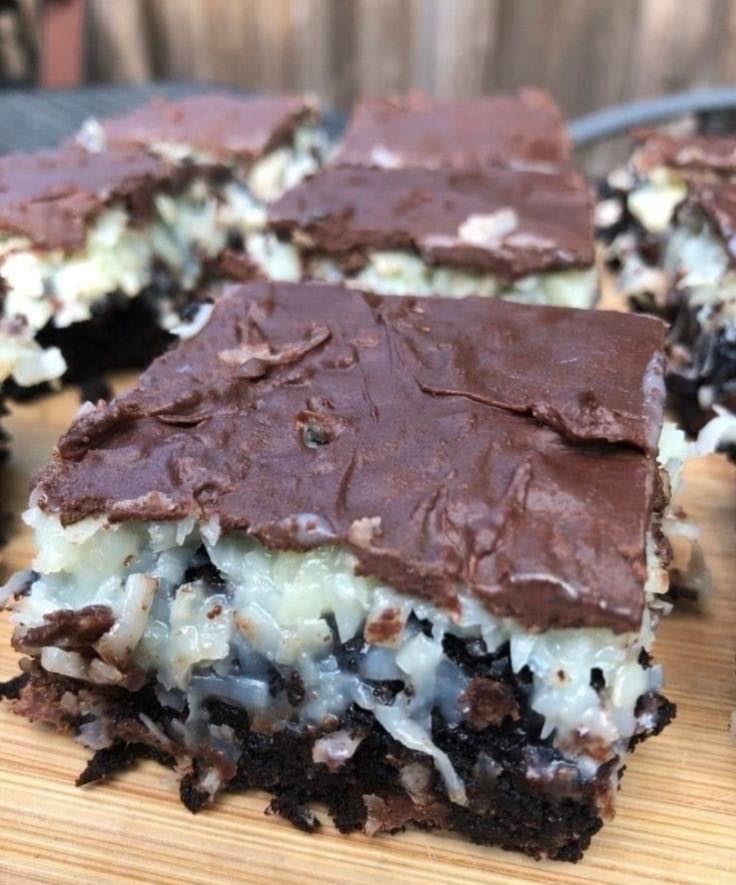 Mounds Cake is een heerlijk dessert geïnspireerd op de klassieke Mounds-reep, een combinatie van rijke chocolade en zoete kokosnoot. Deze cake is gelaagd met een vochtige chocoladebodem en gegarneerd met een weelderige kokosvulling, allemaal bedekt met een gladde chocoladeganache. Het is een perfecte traktatie voor liefhebbers van kokosnoot en een indrukwekkend dessert voor elke gelegenheid.