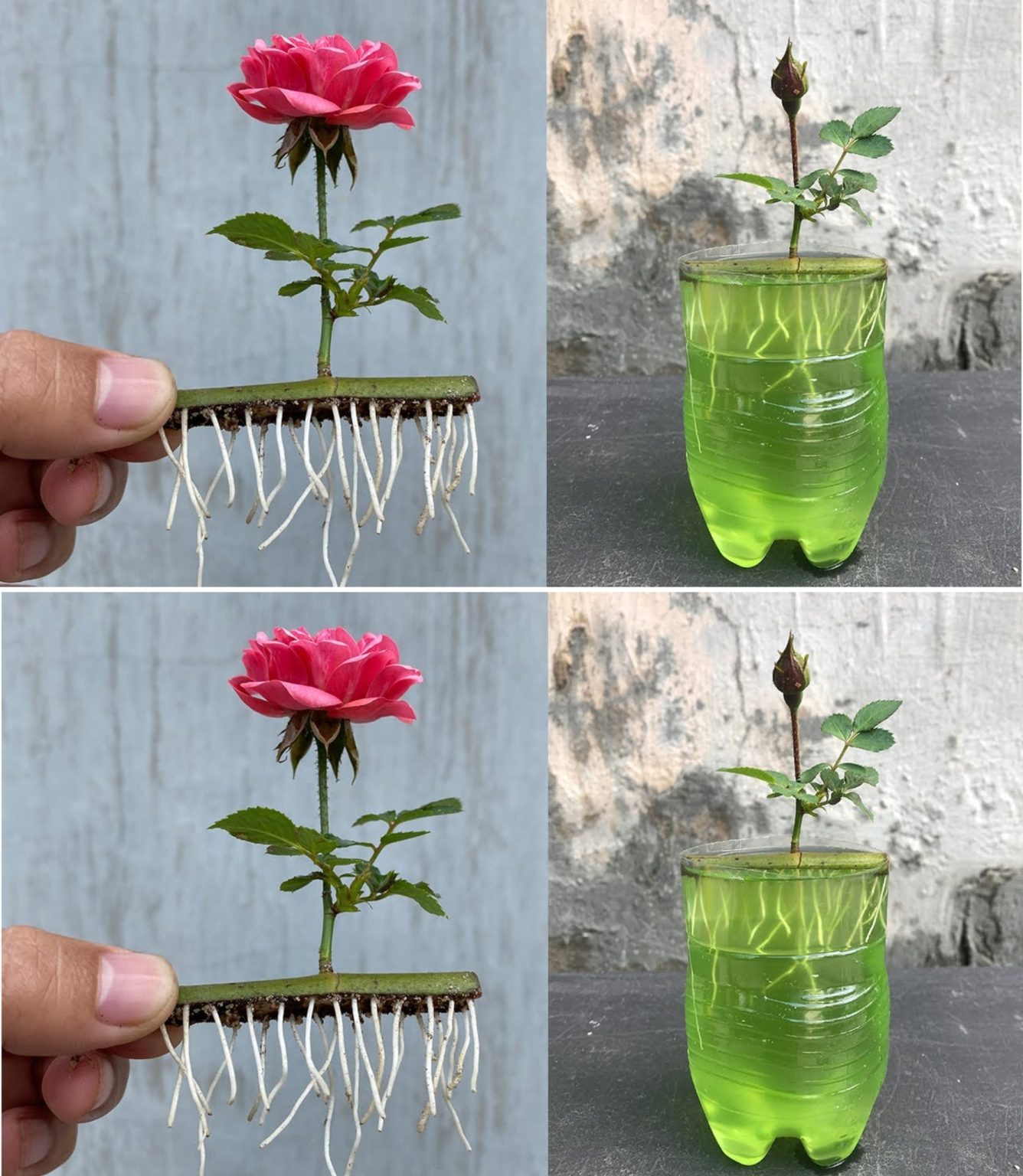 Om een snijroos te vermeerderen, begin je met het gebruiken van een schaar om net onder de bloem te knippen. Meet vijf knopen naar beneden en knip diagonaal onder de vijfde knoop voor een hoekige incisie die het wortelvermogen verbetert in vergelijking met een rechte snede.