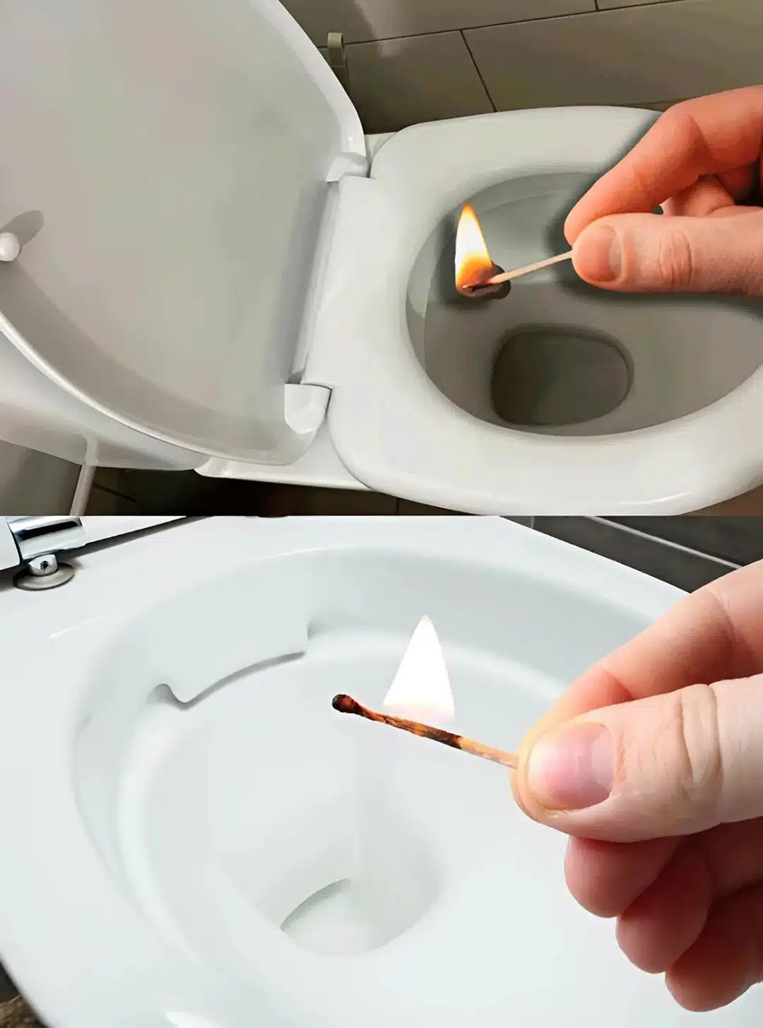 Dit is het trucje: steek direct na toiletgebruik een lucifer aan en blaas de vlam na een paar seconden uit. De zwavelgeur die bij verbranding vrijkomt, neutraliseert de stinkende gassen in de lucht.