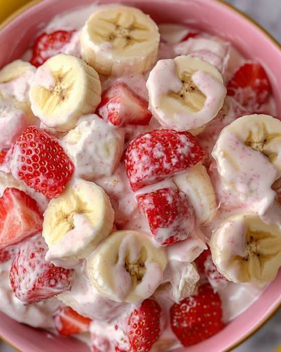 Deze romige salade van aardbeien en bananen is een heerlijke knipoog naar potlucks in het Middenwesten, waar elk gerecht een verhaal over familie en gemeenschap vertelt. De combinatie van verse aardbeien en rijpe bananen, omhuld met een romige vinaigrette, roept herinneringen op aan zomerpicknicks en familiebijeenkomsten op de boerderij. Dit eenvoudige en elegante gerecht legt de essentie van thuis en de voordelen van de seizoenen vast. Ideaal voor wie een vleugje nostalgie en zoetigheid aan zijn tafel wil toevoegen.