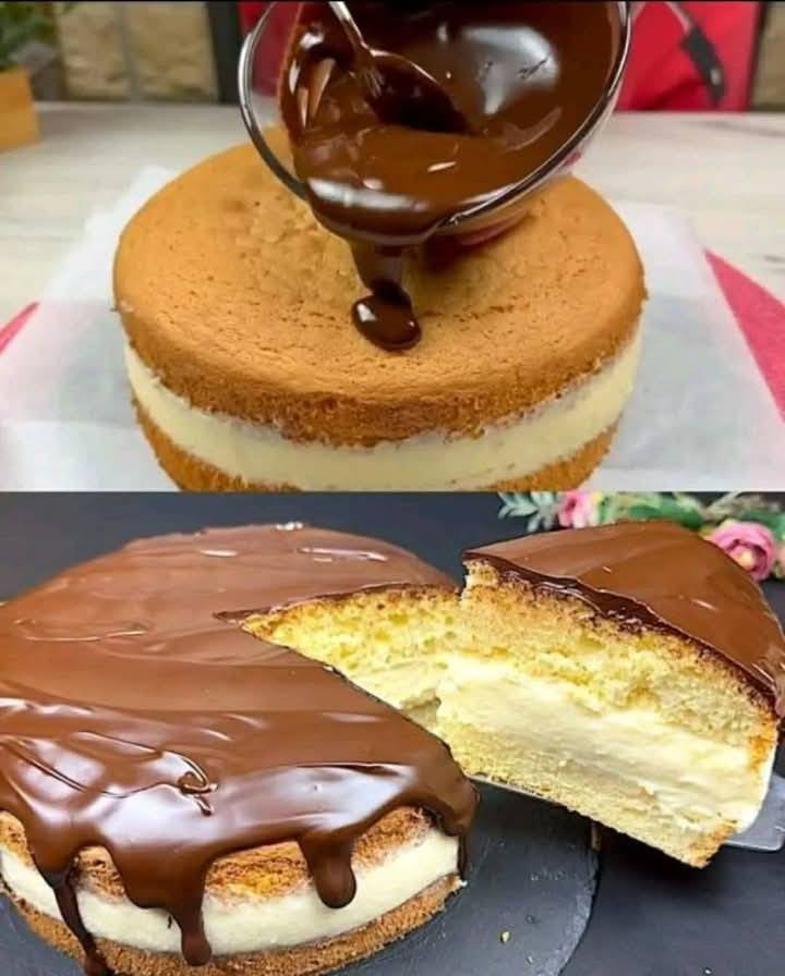 Italiaanse laagjescake met room en chocolade glazuur