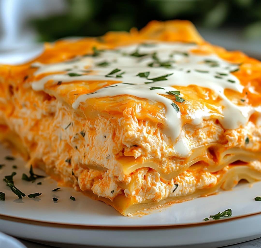 Kaasachtige Buffalo Chicken Lasagne met Ranch Drizzle