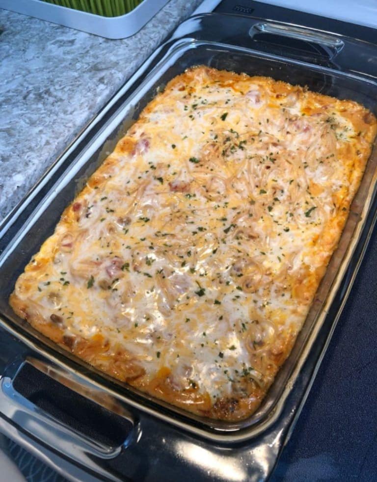Cheesy Chicken Spaghetti Casserole is een romig, smaakvol en geruststellend gerecht dat perfect is voor familiediners of bijeenkomsten. Dit heerlijke gebakken pastagerecht combineert malse kip, romige kaassaus, spaghetti en kleurrijke groenten voor een bevredigende maaltijd. De gesmolten kaas bovenop zorgt voor een gouden, sprankelende afdronk die het onweerstaanbaar maakt. Volg deze stapsgewijze handleiding om deze overheerlijke braadpan te maken.