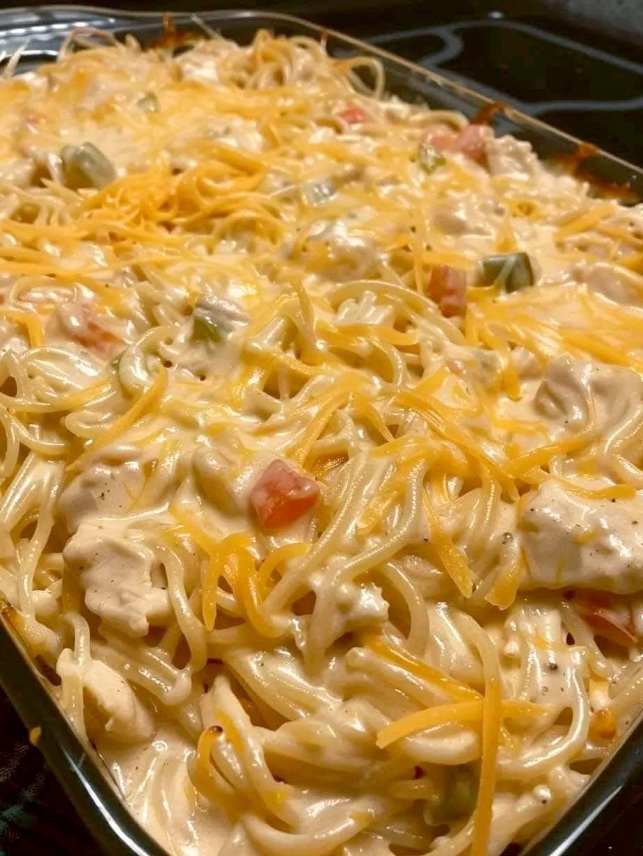 Cheesy Chicken Spaghetti Casserole is a creamy, flavorful, and comforting dish perfect for family dinners or gatherings. This delicious baked pasta dish combines tender chicken, creamy cheese sauce, spaghetti, and colorful vegetables for a satisfying meal. The melted cheese on top creates a golden, bubbly finish that makes it irresistible. Follow this step-by-step guide to make this mouthwatering casserole.