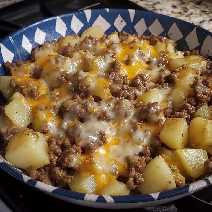 Als je op zoek bent naar een eenvoudige, stevige en heerlijke eenpansmaaltijd, dan is deze kaasachtige koekenpan met rundergehakt en aardappelen de perfecte keuze! Gemaakt met malse aardappelen, gekruid rundergehakt en gesmolten kaas, is dit gerecht puur comfortfood. Het is gemakkelijk te maken, vereist minimale opruiming en is perfect voor een druk doordeweeks diner. Bovendien zit het boordevol smaak en kan het worden aangepast met je favoriete smaakmakers en add-ins!