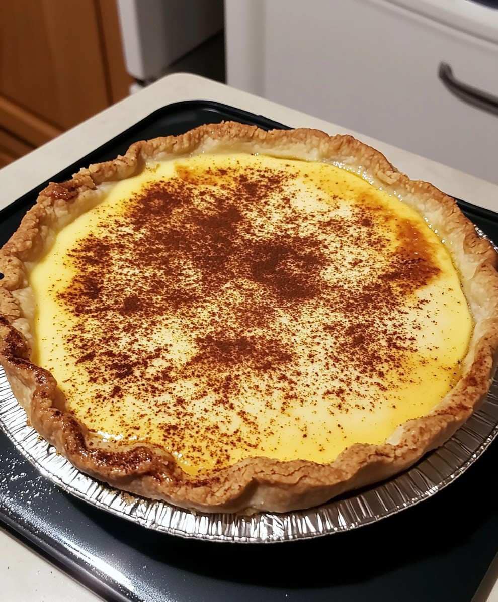 Deze Classic Egg Custard Pie is een tijdloos dessert met een gladde, romige vulling en een schilferige, boterachtige korst. Licht gezoet en delicaat gekruid met nootmuskaat, deze taart is de perfecte balans tussen rijke vla en knapperig deeg. Een favoriet in zuiders en vintage bakken, deze taart is eenvoudig maar elegant – ideaal voor vakanties, speciale gelegenheden of gewoon zomaar!