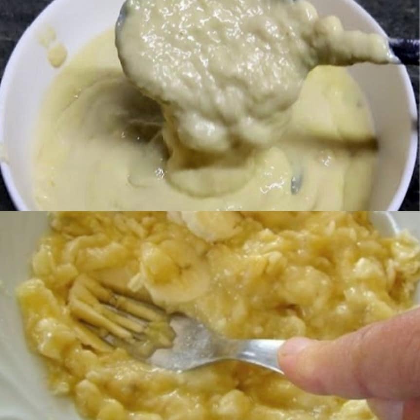Prak de rijpe bananen in een mengkom met een vork tot een gladde massa.