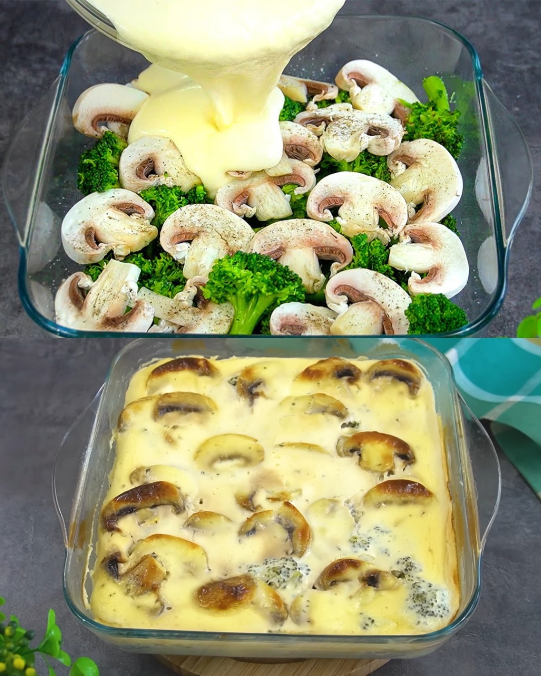 Ingrediënten: 300 gram broccoli 1 theelepel zout 200-250 g champignons Zonnebloemolie (om in te vetten) Zout en zwarte peper (naar smaak) 4 eieren 800 g yoghurt 6 aardappelen Zonnebloemolie (om te frituren) Rode peper (optioneel) 30 g mayonaise 50 g verse room 1 teentje knoflook Verse dille 4 plakjes mozzarellakaas Instructies: vervolg op de volgende … Lire plus