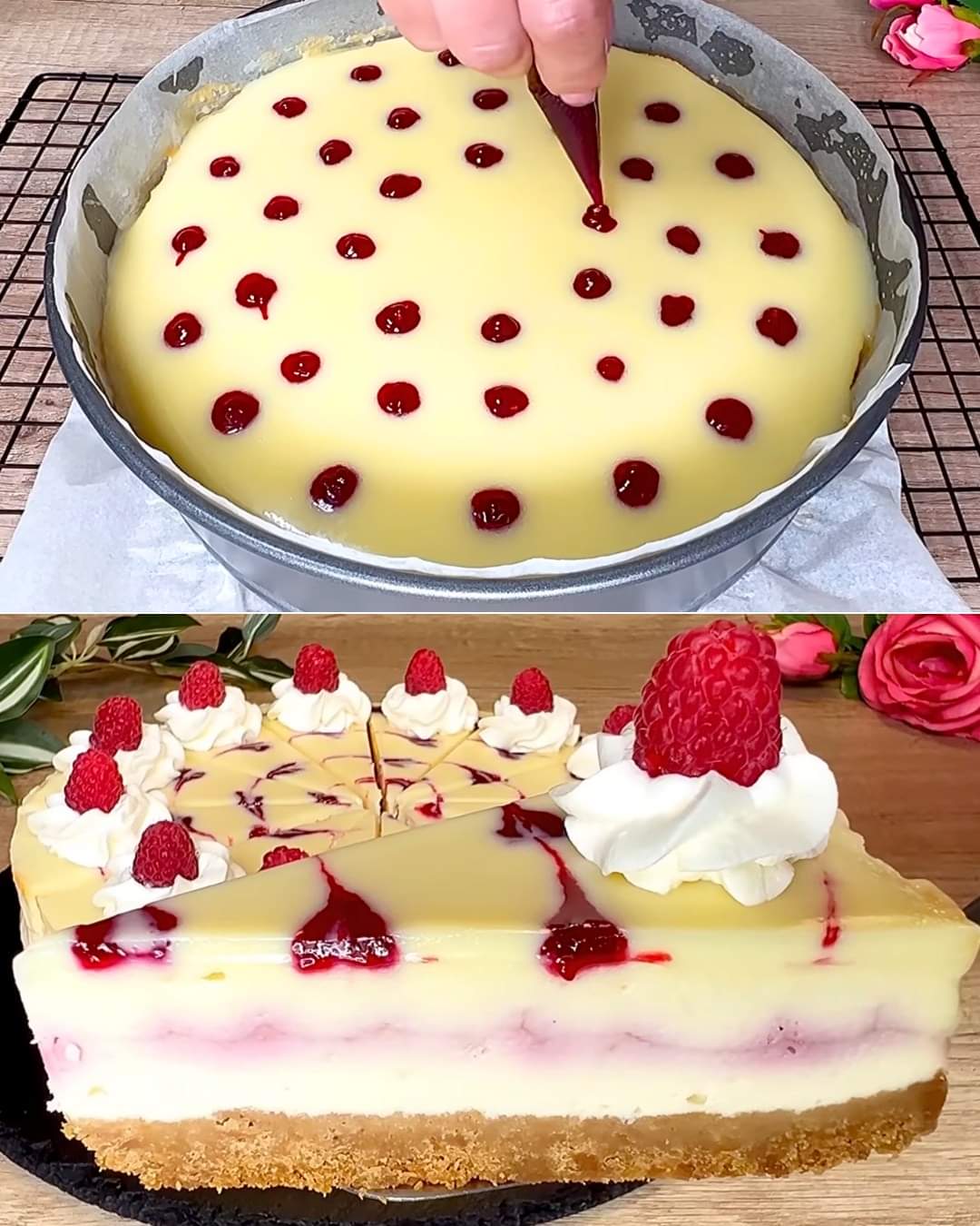 Cheesecake met frambozen en witte chocolade: het onweerstaanbare dessertrecept