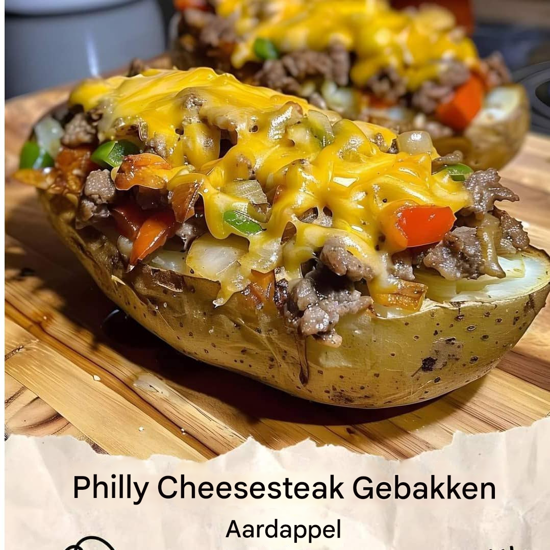 Philly Cheesesteak Gebakken Aardappelen combineren de hartige smaken van een klassieke Philly cheesesteak met de geruststellende textuur van een gepofte aardappel. Dit recept is perfect voor een stevig diner of een bevredigende lunch, waarbij gekruid rundvlees, gebakken groenten en gesmolten kaas worden gecombineerd op een perfect gebakken aardappel.