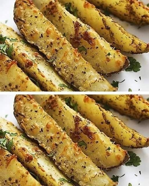 Pommes de terre en quartiers de parmesan, à l’ail cuit au four
