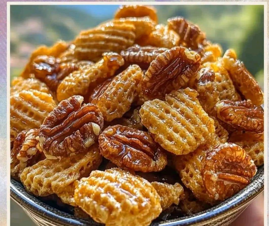 Praline Crunch is een zoete en zoute snackmix die knapperige ontbijtgranen en pecannoten combineert met een gekarameliseerd boterachtig glazuur. Afkomstig van de smaken van New Orleans-pralines, is deze traktatie gemakkelijk te bereiden, waardoor het een favoriet is voor feestjes, geschenken of een heerlijke snack. Het is perfect voor degenen die genieten van de rijke smaken van bruine suiker en boter in combinatie met knapperige texturen.