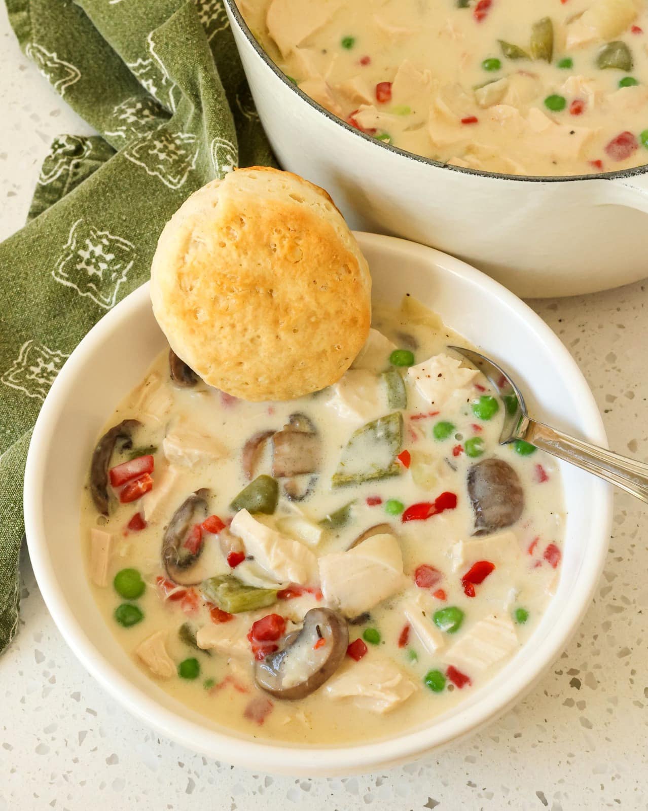 Deze romige kip- en groentesoep is een geruststellend en stevig gerecht dat perfect is voor koude dagen. Met malse kip, kleurrijke groenten en een rijke, smaakvolle bouillon is het een eenpansmaaltijd waar het hele gezin dol op zal zijn. Serveer het met een koekje of knapperig brood om elke heerlijke druppel op te nemen.