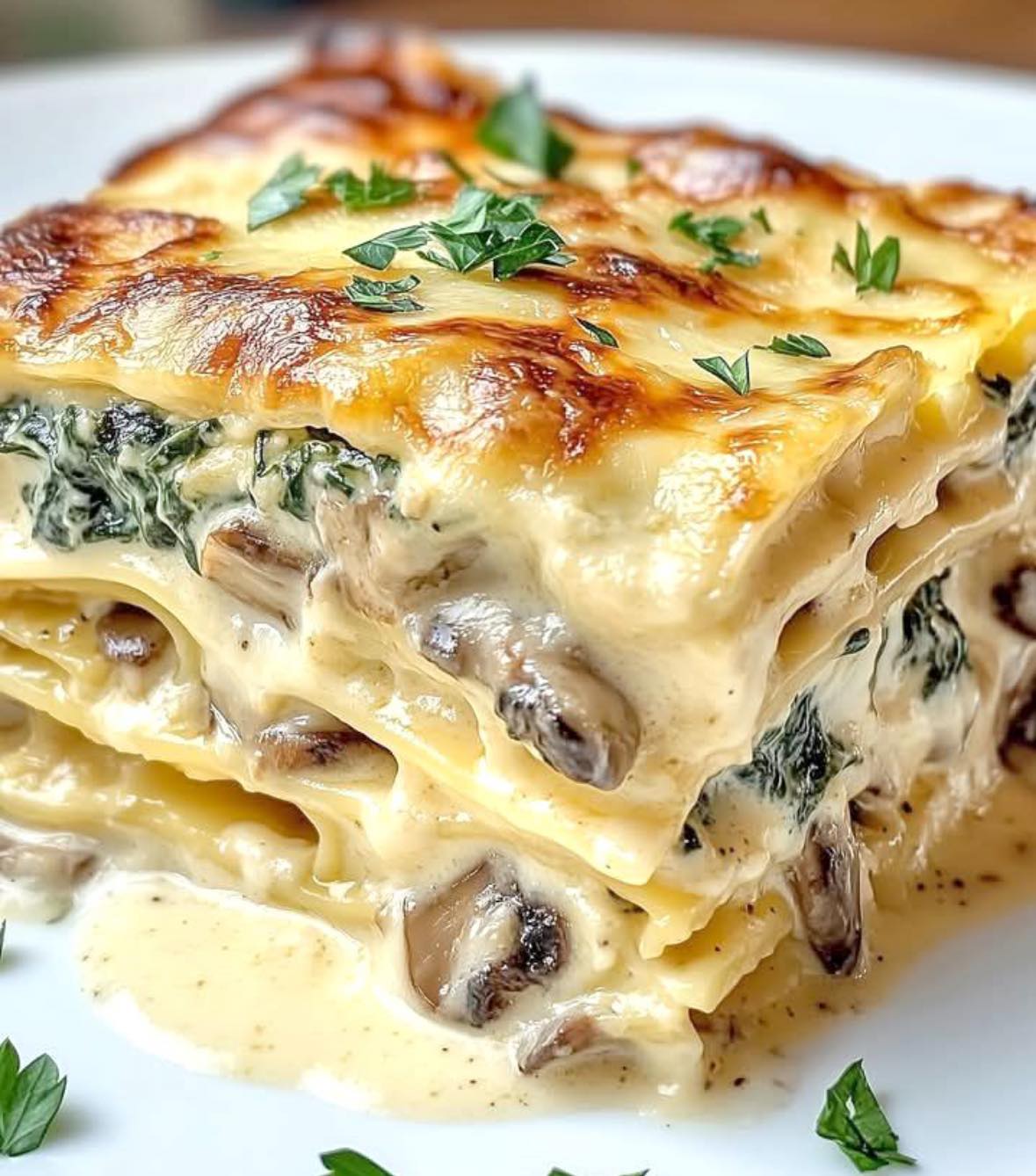 Deze romige lasagne met spinazie en champignons combineert lagen gebakken spinazie, champignons en een luxe ricottamengsel met een romige witte bechamelsaus. Gegarneerd met kleverige mozzarella en tot in de perfectie gebakken, is dit hartige gerecht een vegetarisch meesterwerk dat geruststellend en toegeeflijk is.