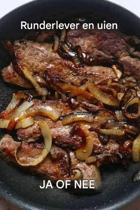 Dunne plakjes runderlever worden gebakken in olijfolie en vervolgens geserveerd met gekarameliseerde uien. Zorg ervoor dat je de lever niet te lang bakt! Als hij medium rare is, is hij mals en zoet.