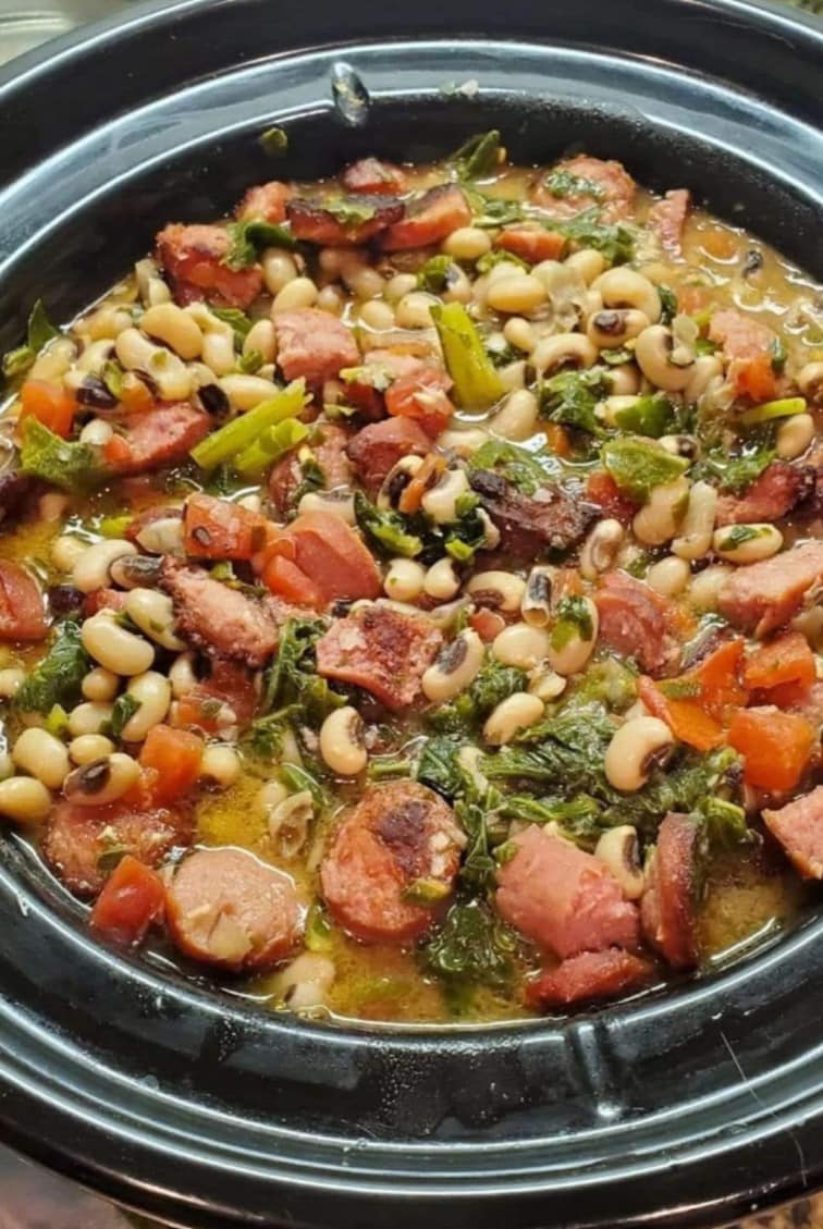 Slow Cooker Black-Eyed Peas and Greens is een geruststellend en smaakvol zuiders gerecht dat traditioneel wordt genoten voor geluk en voorspoed, vooral op nieuwjaarsdag. Door erwten met zwarte ogen, gerookt vlees en voedzame groenten te combineren, is dit recept een stevige en gezonde maaltijd die zowel gemakkelijk te bereiden is als vol rijke, hartige smaken.