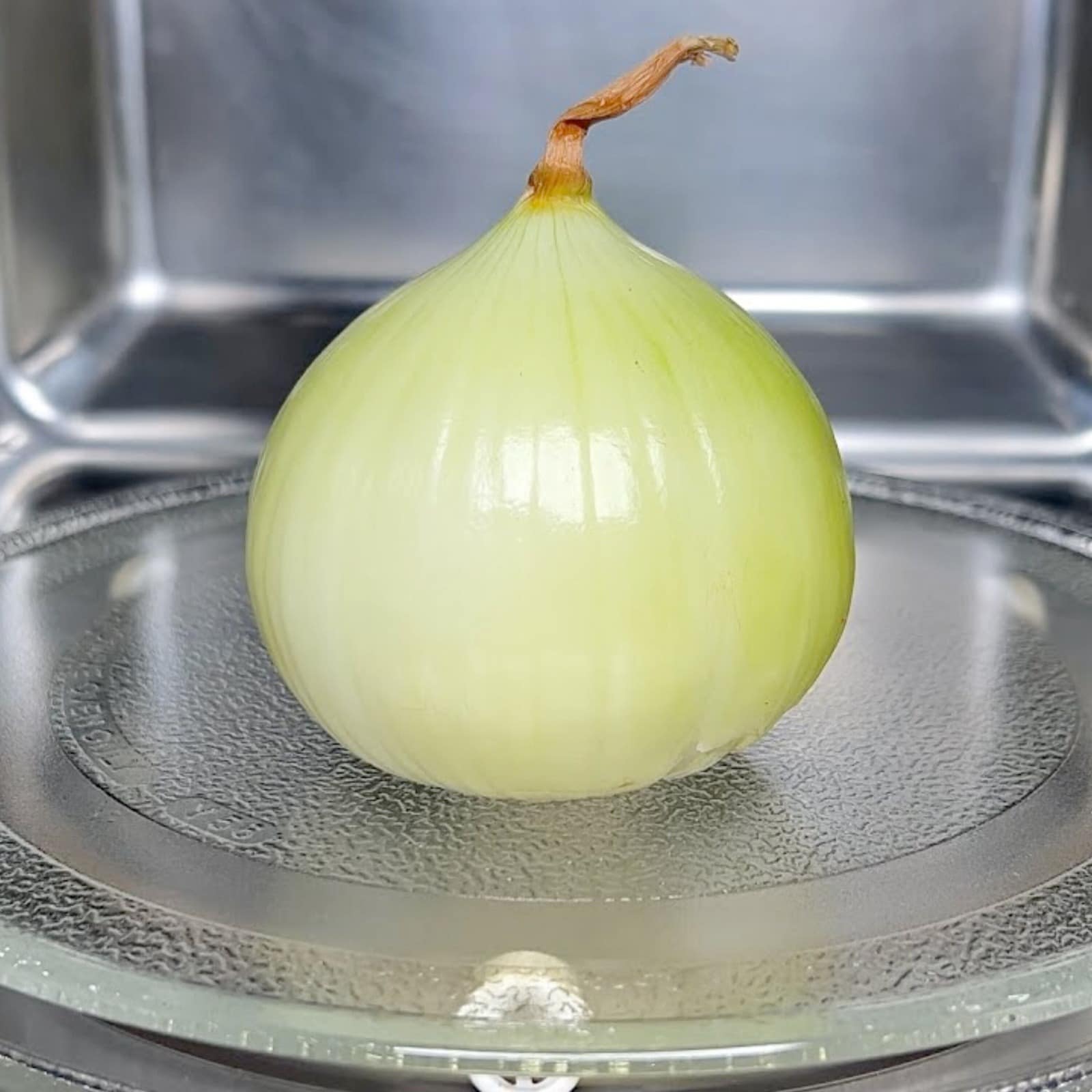 Haal na twee minuten het gerecht voorzichtig uit de magnetron (de stoom kan heet zijn!) en onthul perfect gekookte uien.