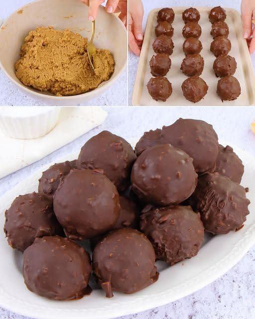 Doop elke bal in de chocolade en laat ze drogen op een bakplaat. Serveer alles samen op een serveerschaal.