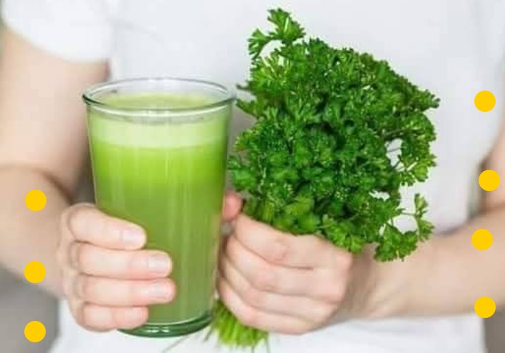- Jus de persil : Mélangez un quart de tasse de jus de persil avec un quart de tasse d’eau, ajoutez du miel et du citron pour adoucir le goût. Consommez ce mélange une fois par jour pendant deux semaines.