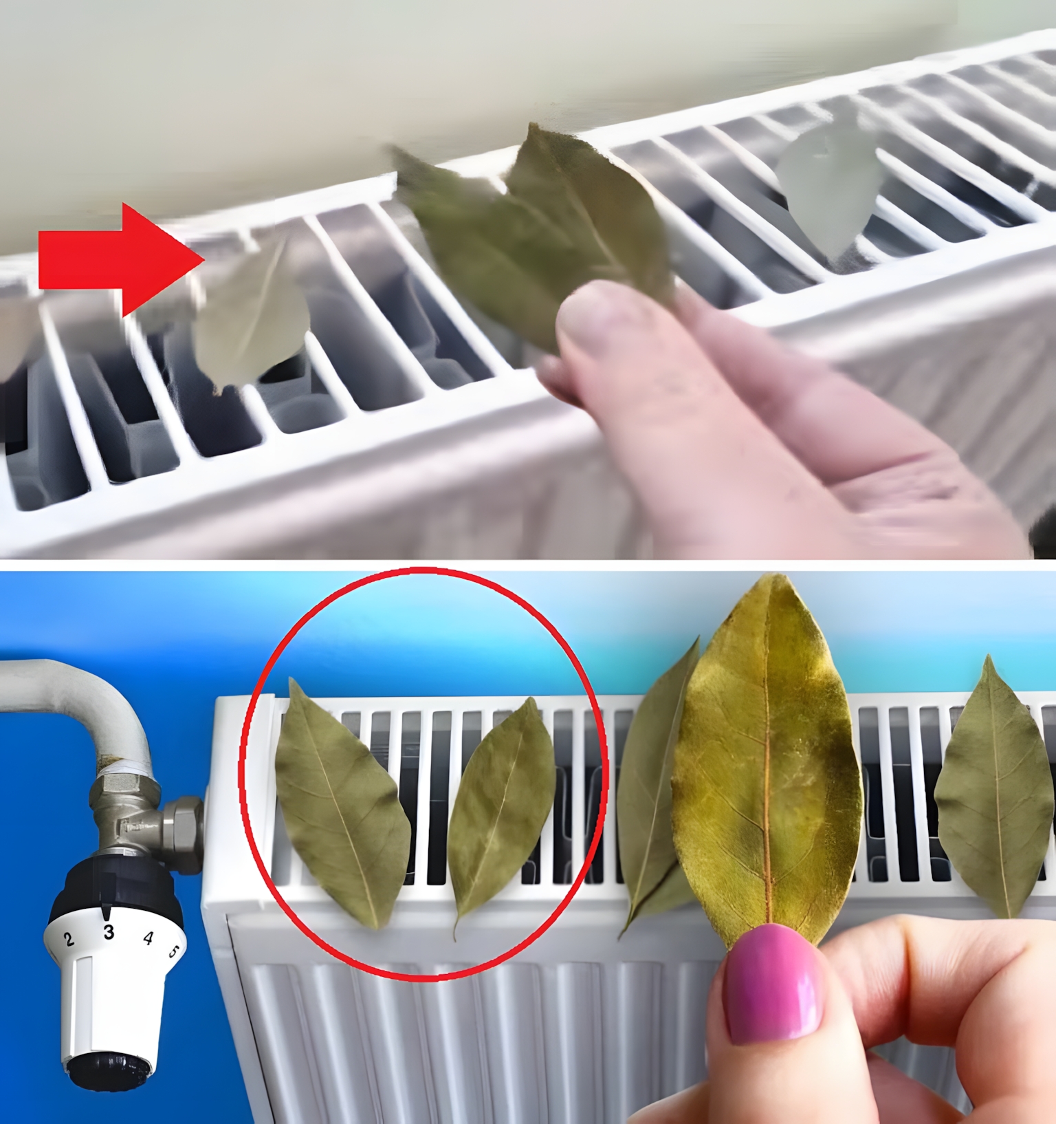 Plaats laurierblaadjes op de radiator