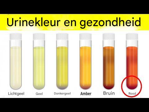 Wat het betekent: Het kan te wijten zijn aan dieet, medicijnen of ernstigere gezondheidsproblemen. Mogelijke oorzaken: Het eten van bieten, bramen of rabarber kan tijdelijk roodachtige urine veroorzaken. Aanhoudende roze of rode urine kan echter wijzen op bloed in de urine (hematurie), wat kan worden veroorzaakt door infecties, nierstenen of zelfs ernstigere aandoeningen zoals blaaskanker. Wat te doen: Als de kleurverandering verband houdt met dieet, zou deze binnen een dag moeten verdwijnen. Raadpleeg een arts als de kleurverandering aanhoudt of gepaard gaat met pijn.