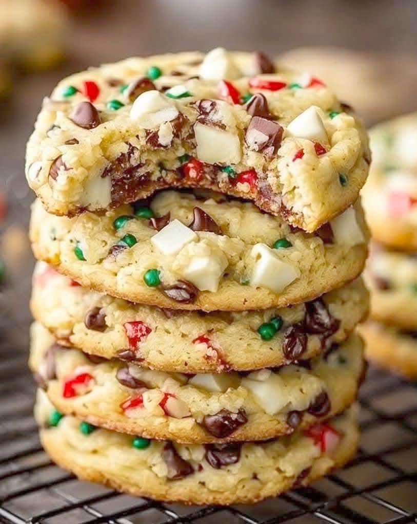 Winter Wonderland Chocolate Chip Christmas Cookies zijn de perfecte traktatie voor de feestdagen en combineren de klassieke smaak van chocoladekoekjes met een feestelijke twist. Met geplette zuurstokken, witte chocoladeschilfers en sneeuwvlokhagelslag, brengen deze koekjes vakantiesmaken en leuke decoraties samen om een dessert te creëren dat zowel heerlijk als visueel verbluffend is. Ze zijn geweldig om cadeau te doen, vakantiefeestjes of gewoon om van te genieten met dierbaren tijdens het seizoen.