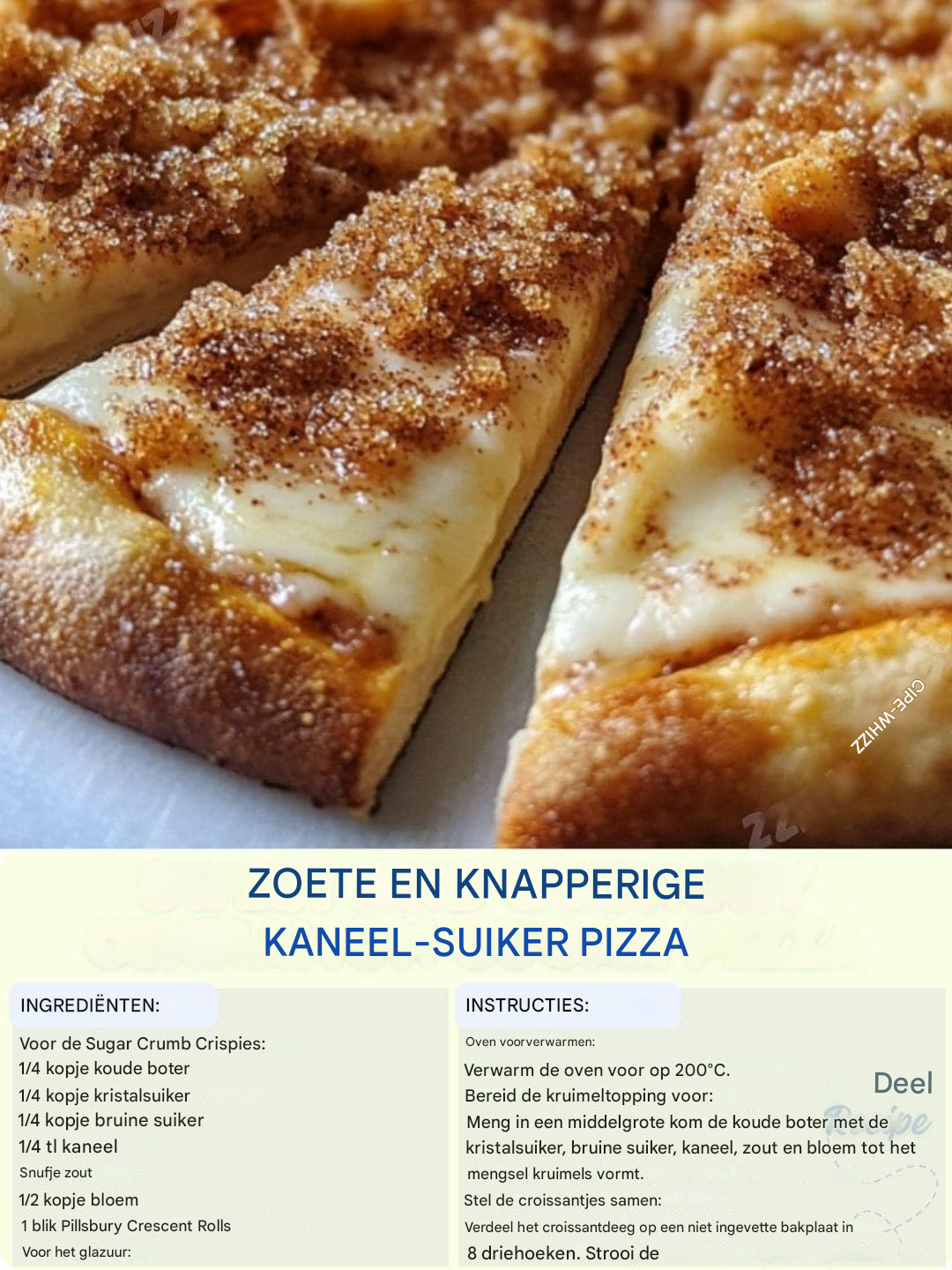Zoete en knapperige kaneel-suiker pizza Heerlijke kaneel-suiker pizza